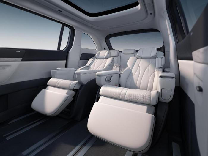 新车座椅系统经重新设计,创新整合过道与零重力座椅功能,第二排配备10点式按摩(可选16点式)。第三排座椅支持180°电动放平及加热功能,车内最大空间达7.7㎡,二排座椅间距超越波音737-800头等舱标准。底盘搭载主动式后轮转向系统,转弯半径5.4米,配备6D舒适防晕车算法及58项NVH静音升级。